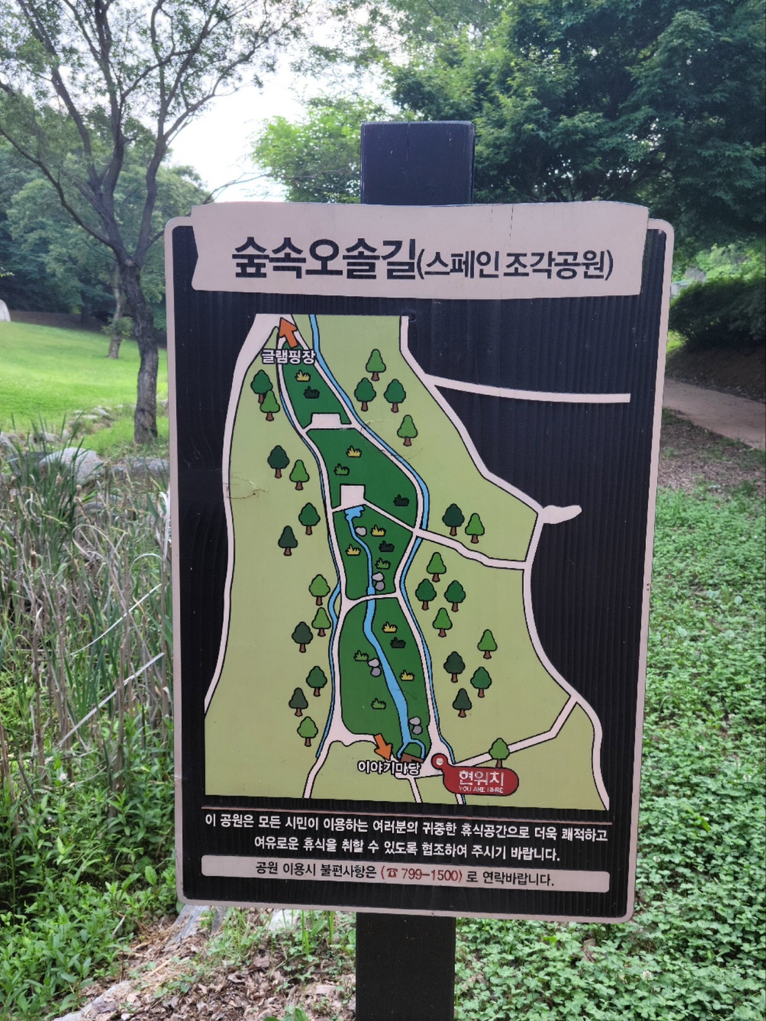 글램핑장을 왼쪽에 두고 오른쪽으로 올라가면 스페인 조각공원이 나온다는 표지가 있어 올라가 봅니다.