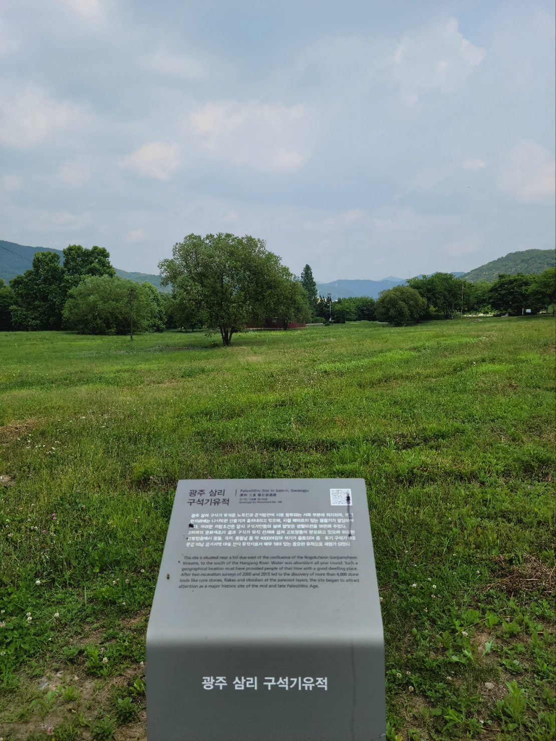 주차장에 진입하는 직선길에는 광주 삼리 구석기 유적지가 자리 잡고 있었습니다. 크게 유물은 볼 수 없었지만 그 지역임을 표시하는 간판들이 곳곳에 서 있었습니다.