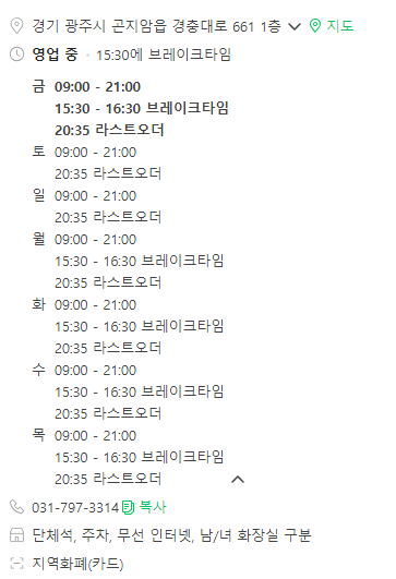 오전 9시부터 영업하고 오후 3시 30분부터 4시 30분까지 브레이크 타임임을 알고 방문하시면 좋을 것 같습니다.