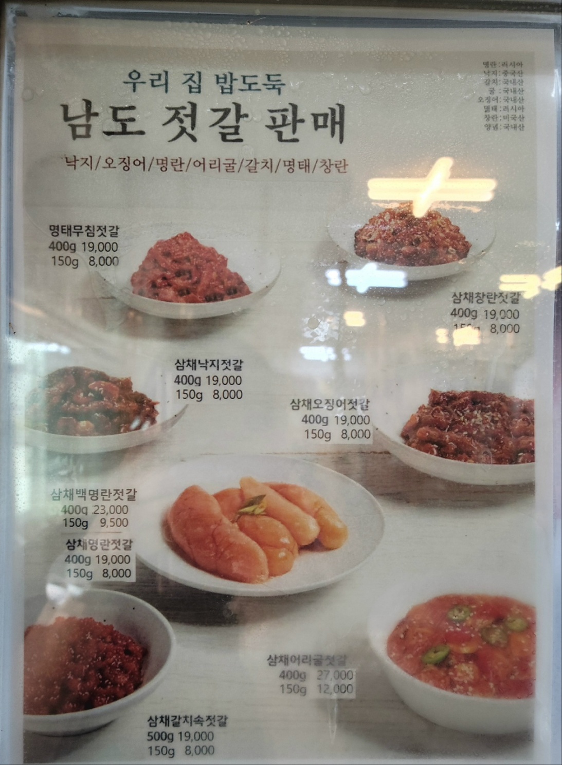 갖가지 젓갈도 정갈하게 담아져 포장 판매하시더라고요. 저희는 젓갈을 잘 먹지 않아 이건 패스했습니다.