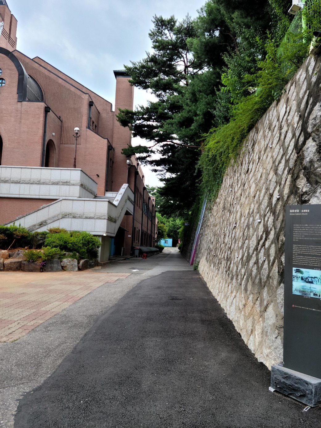 성당과 돌담사이를 지나 가면 성체순례성지길이 나와요.