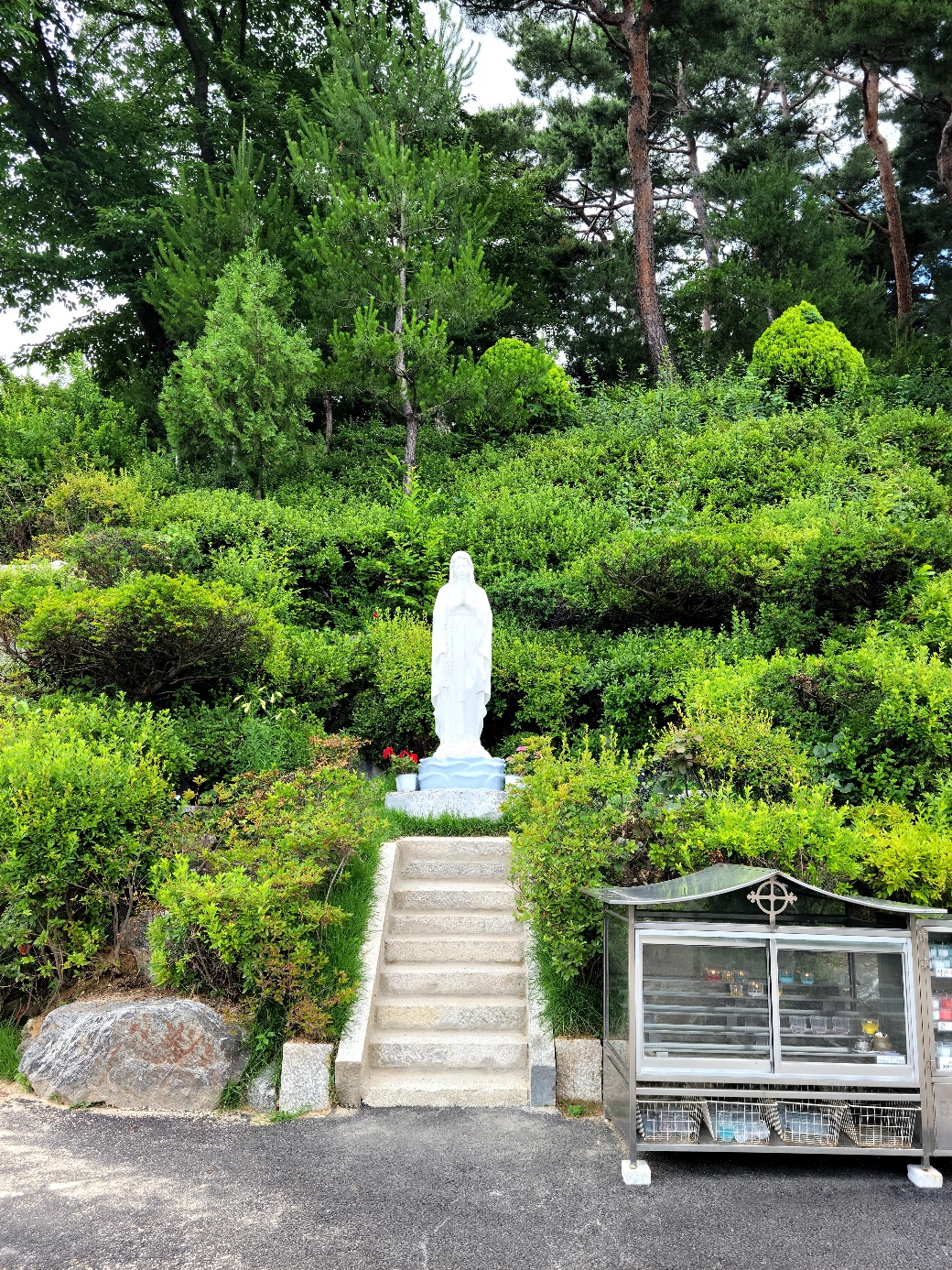 주차장옆에 기도하는 성모마리아상이 있어 오는 이들을 반겨주는 기분이 들었습니다.