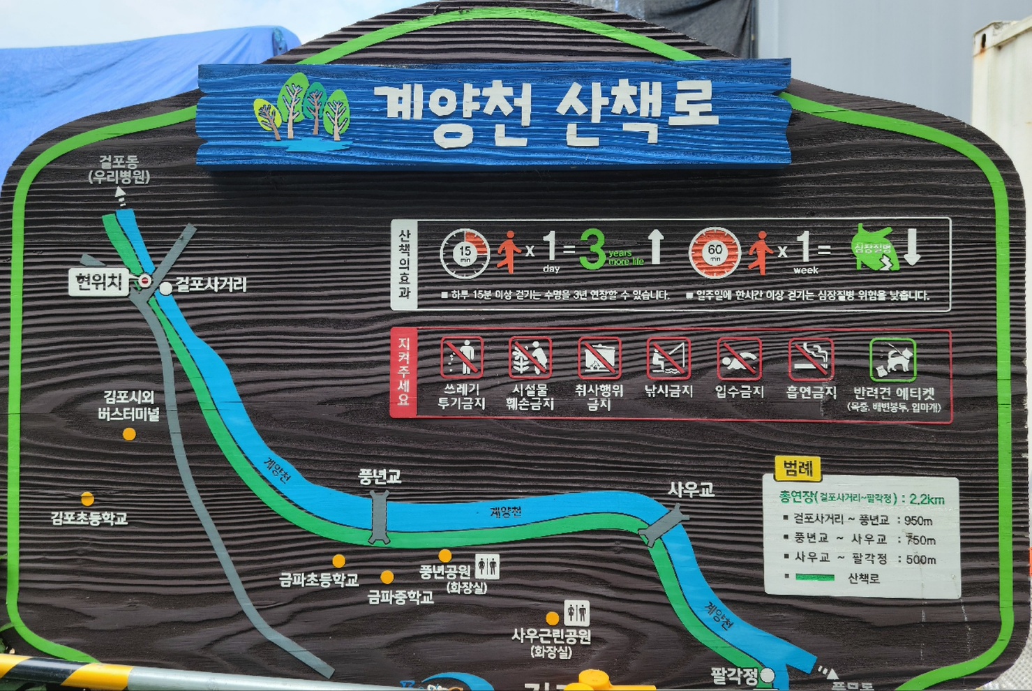 5분 거리에 계양천 산책로가 있어 조금 더 걷기로 했어요.