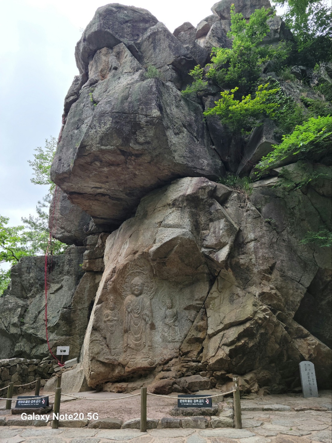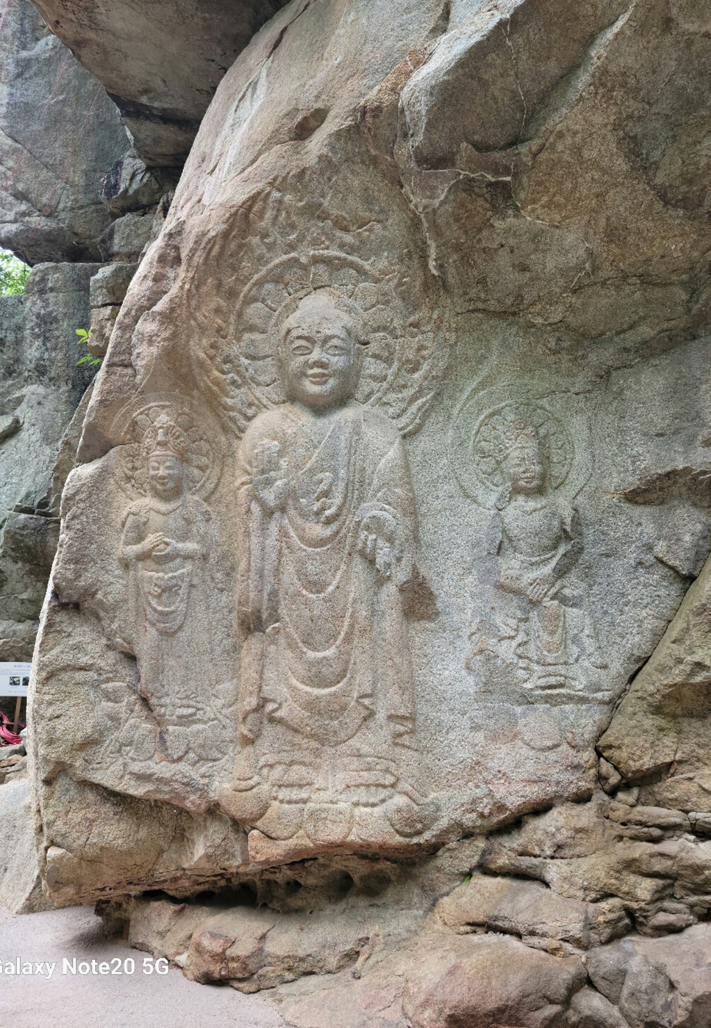 드디어 마주하게 된 마애여래삼존상입니다. 문화재출입 및 접촉금지를 하고 있고, 보존을 위한 여러 가지 장치를 해놓고 있어요.