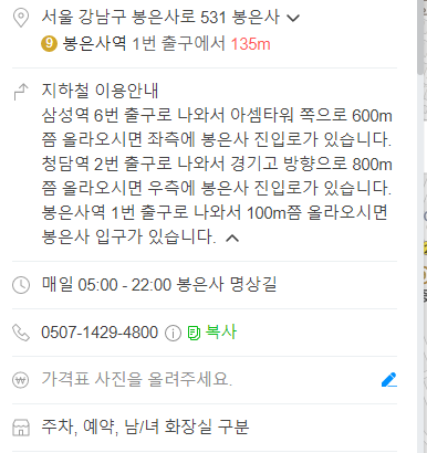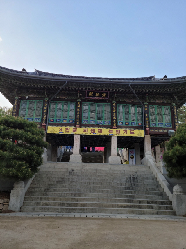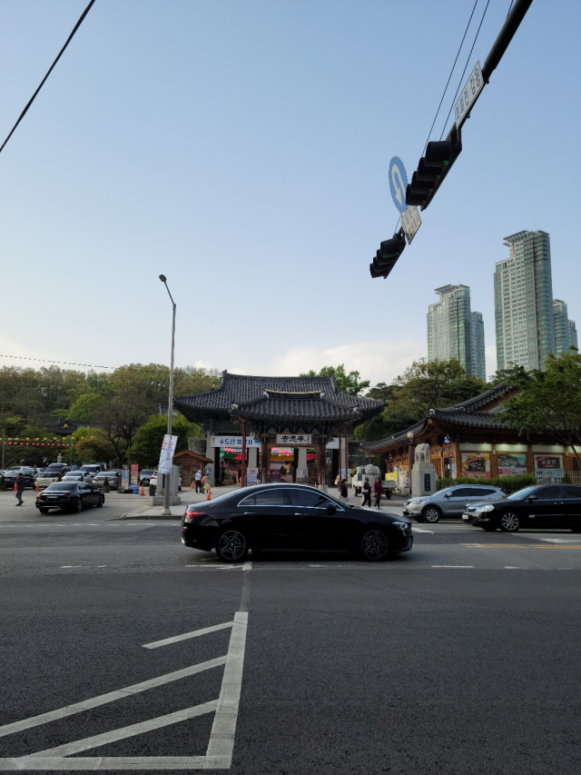 코엑스 앞에서 바라본 봉은사 정면입니다. 지하철로는 9호선 봉은사역 1번 출구 쪽에서 나와 걷다 보면 봉은사에 도착합니다.
