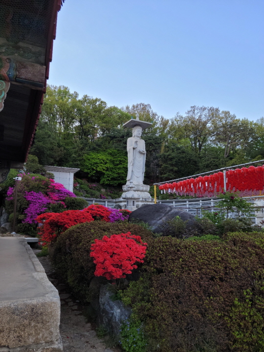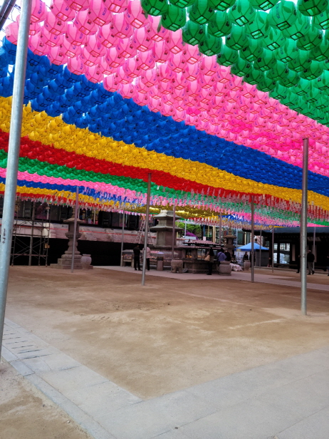 연등이 가득 머리 위에 자리 잡고 있어 해가 쨍쨍한 날에도 그늘을 만들어주고 있습니다. 최근에는 외국인들도 자주 보이는 걸 보면 우리나라 사찰에 대한 관심도 많이 지고 있는 듯 보였습니다. 종교의 벽을 넘어 마음의 평안함을 느낄 수 있게 하는 염불소리가 정겹게 느껴지기도 합니다.