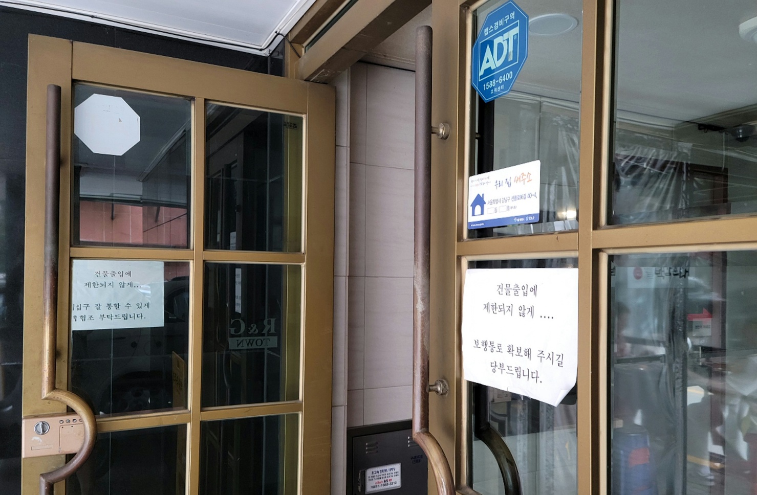 포장주문을 하고 바깥쪽에서 대기하고 있으면 됩니다. 줄을 서서 먹는 집이다 보니 건물 출입하는데 방해되지 않도록 당부하는 문구도 붙어있어요.