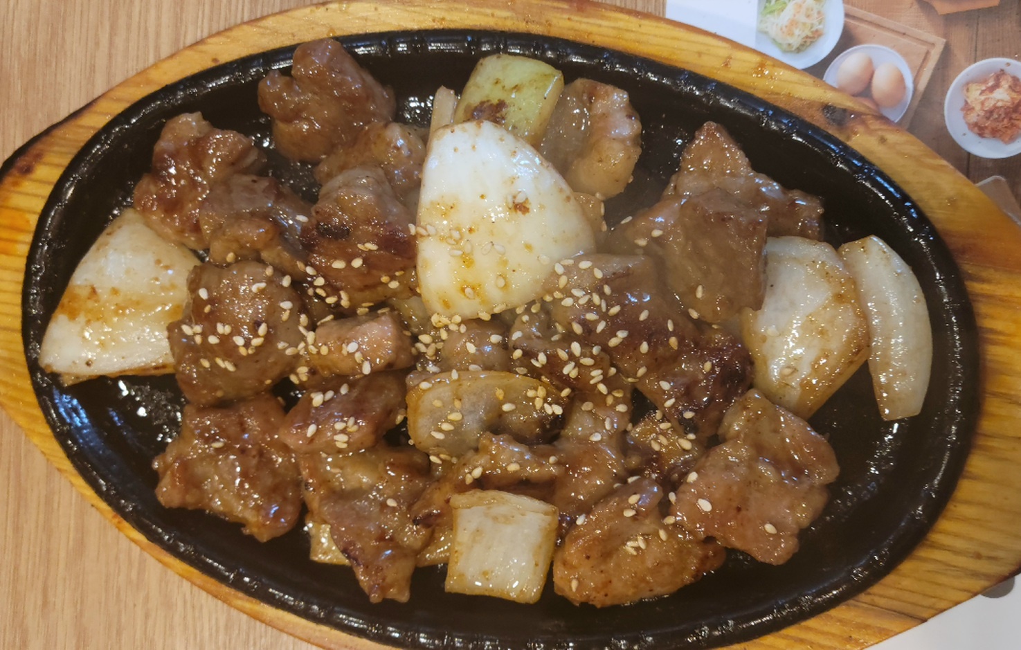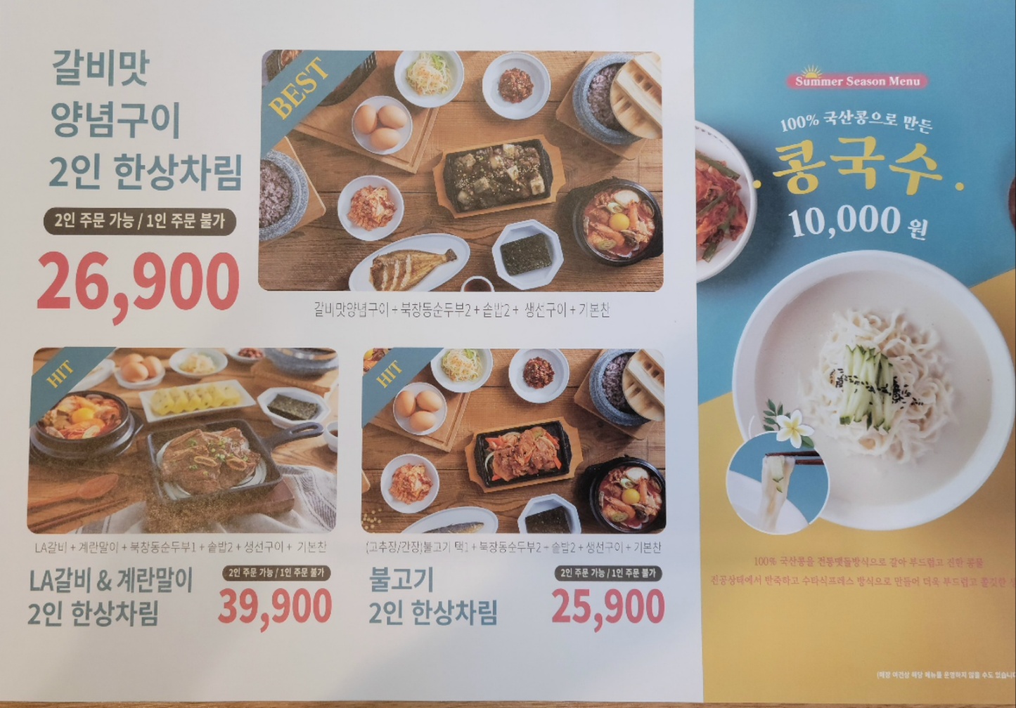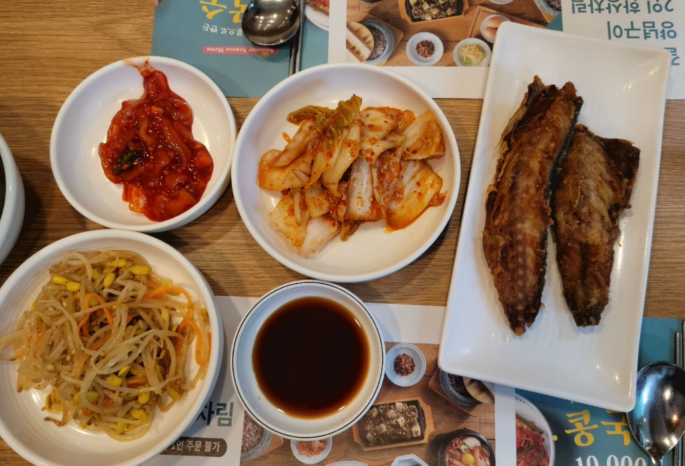 상세 메뉴판 보기 전에 깔아주신 것에 눈길이 가서 양념구이 2인 한상차림을 주문하고 기다렸습니다.