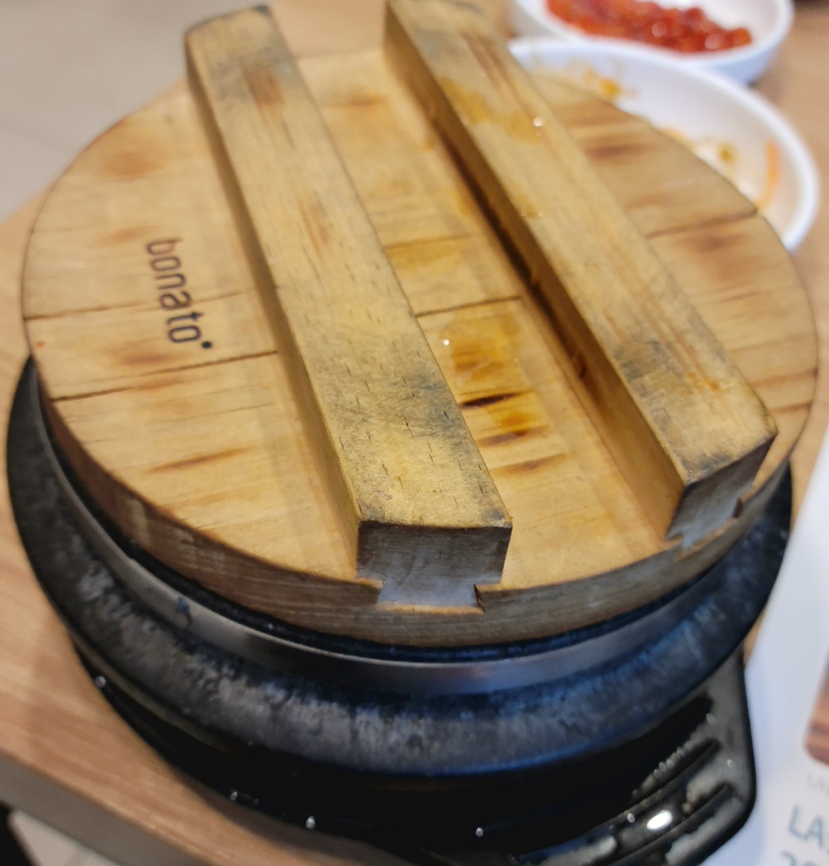 매력적인 솥밥도 나와 2~3분 후 밥 덜어내고 누룽지 만들기 위해 물을 부어 잠시 대기하였습니다.