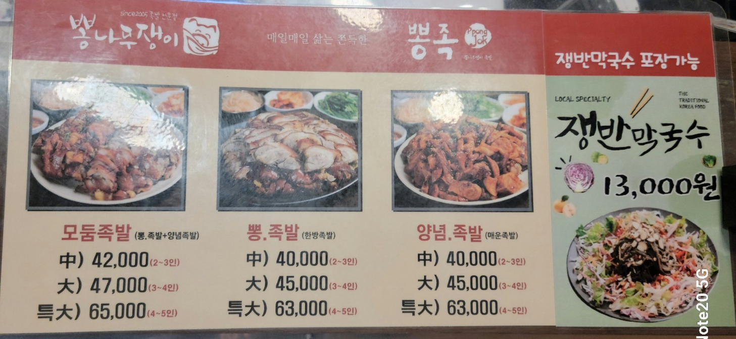 가격표입니다. 모둠족발 중자가 42,000원, 대자가 47,000원, 특대자가 65,000원이고, 뽕, 족발이나 양념족발은 중자가 40,000원, 대자가 45,000원, 특대자가 63,000원입니다. 쟁반막구수노 13,000원에 포장까지 가능하네요. 여기서 저는 모둠 족발 중자를 주문하였습니다. 오후 4시 30분 기준 전화주문 후 15분 뒤 찾으러 가면 딱 맞는 시간입니다. 예전에 7시쯤 전화주문했을 때는 1시간까지도 대기한 적이 있으니 원하는 시간에 맞춰 주문하시면 될 것 같아요.