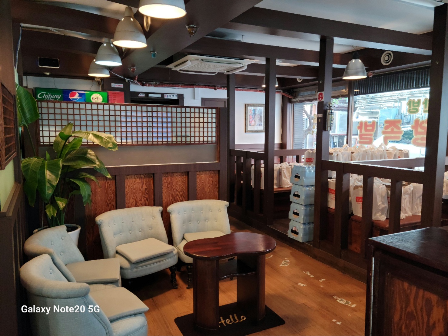 한쪽은 포장을 위한 봉투들이 줄지어 있는 것이 확인되는 본관 1층입니다. 직접 드시는 것도 많고, 포장도 그만큼 많다는 뜻이겠죠.