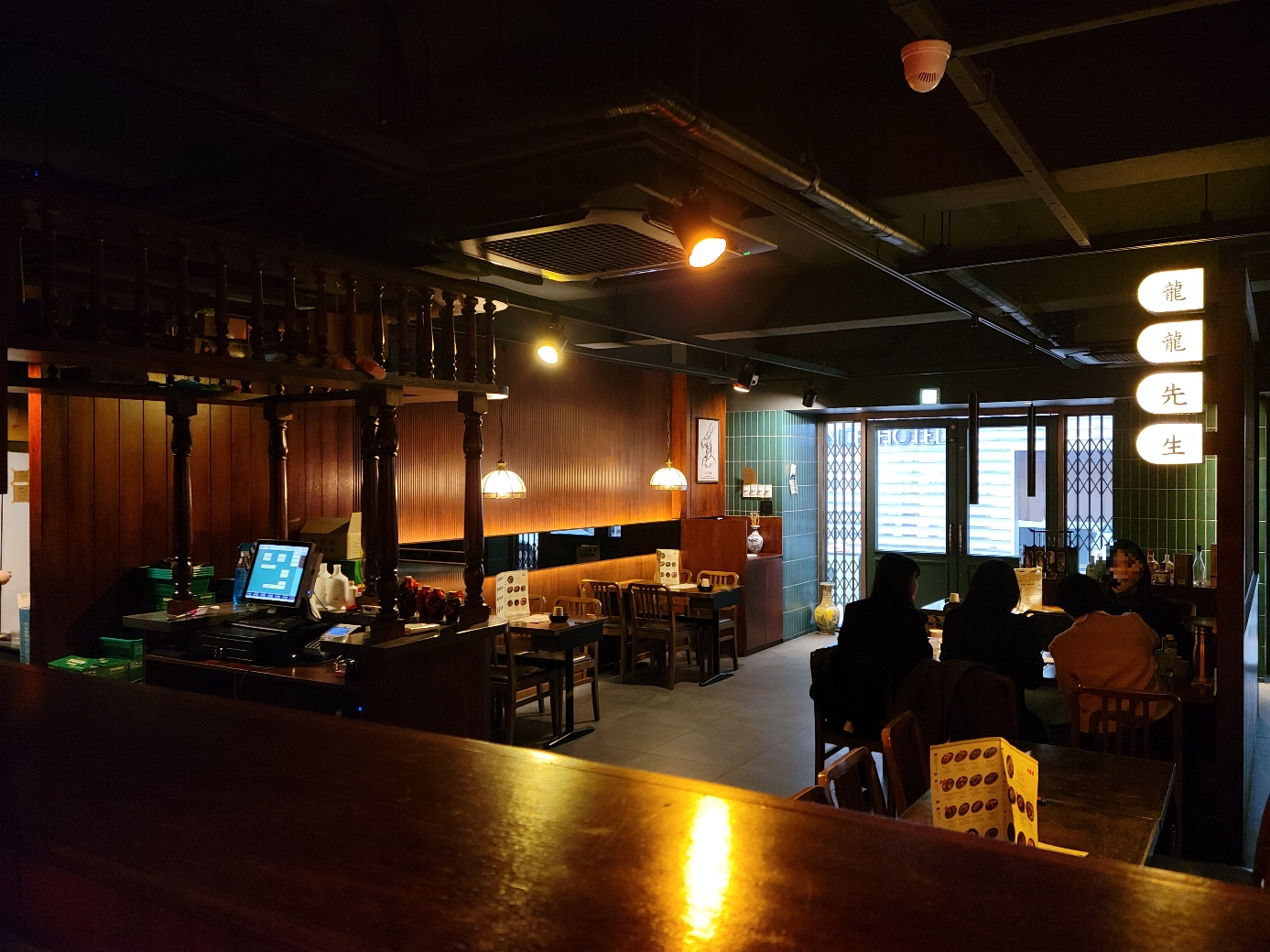 5시 10분쯤 도착했을 때 창가 쪽 테이블은 이미 자리가 찼고 내부에도 몇 테이블 자리 잡고 계신 분들 있어 반층쯤 올라온 내부 자리에 앉았습니다. 개인적으로 저희가 잡은 자리가 저는 좋았어요. 밝은 밖과는 상반되게 안은 어두운 조명으로 가득 채워져 왠지 분위기가 남다르게 느껴지기도 했습니다.