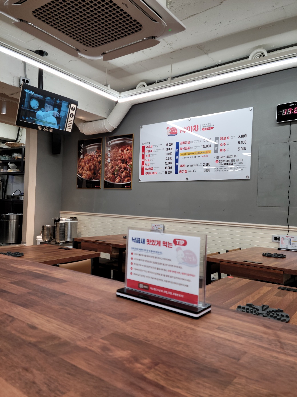 창가 쪽은 손님들이 계셔서 반대편을 살짝 사진에 담아보았습니다. 깔끔하게 메뉴판 보이고 1인 1식 기본이며 2인분 이상 포장도 된다 하니 나중에 집에 손님 오시거나 하면 포장해 봐야겠다는 생각이 들었습니다.