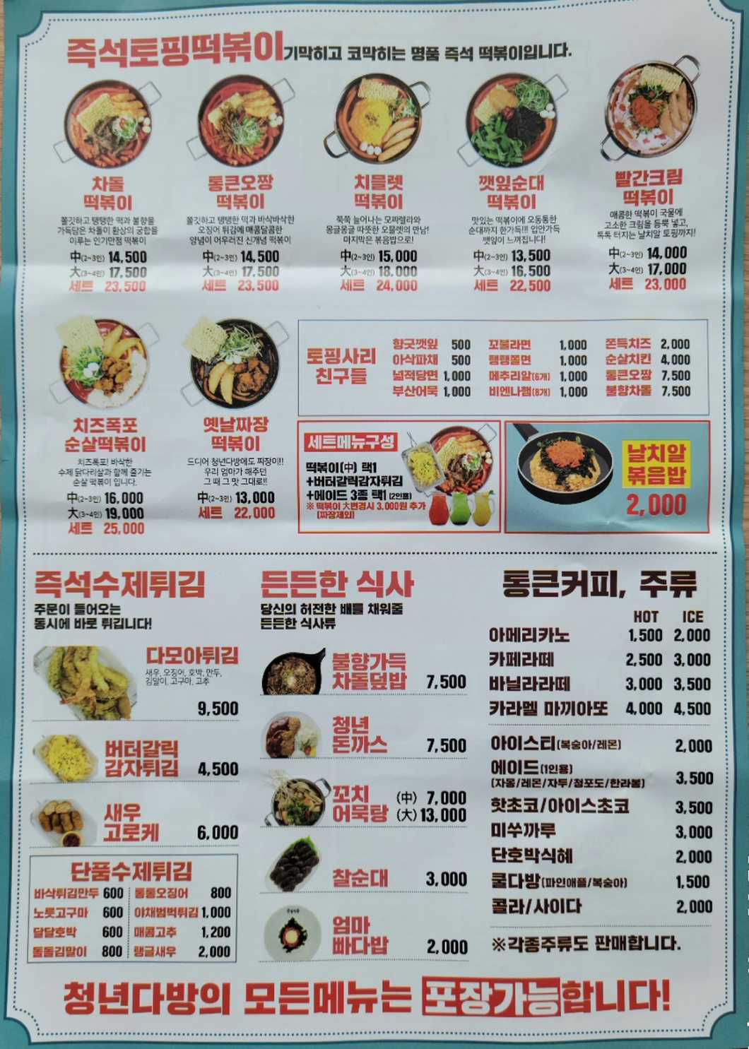맛도 좋고 양도 넉넉하여 남녀노소 누구나 즐길 수 있는 청년다방에서 명품떡볶이 한 번쯤 드셔보시길 추천합니다.