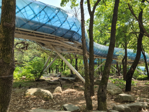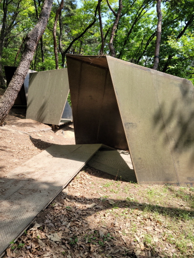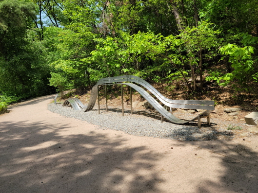 전망대에서 내려오는 길에 보이는 여러 작품들입니다. 담긴 의미도 있고 자연과 어우러진 작품들을 보는 재미도 쏠쏠했습니다. 두 번째 사진이 나무 위에 선으로 된 집입니다. 스탬프투어에 포함된 곳으로 내부로 들어가 한참을 걸어 나와야 하는 곳이었습니다. 서울대 관악 수목원 입구 쪽까지 걸어가야 나오는 곳으로 대표적인 작품으로 보일만큼 신기한 작품이었습니다.
