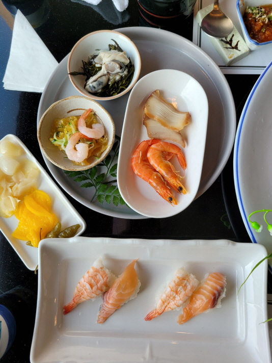 초밥과 굴, 냉채와 새우도 함께 즐기게 등장했습니다.