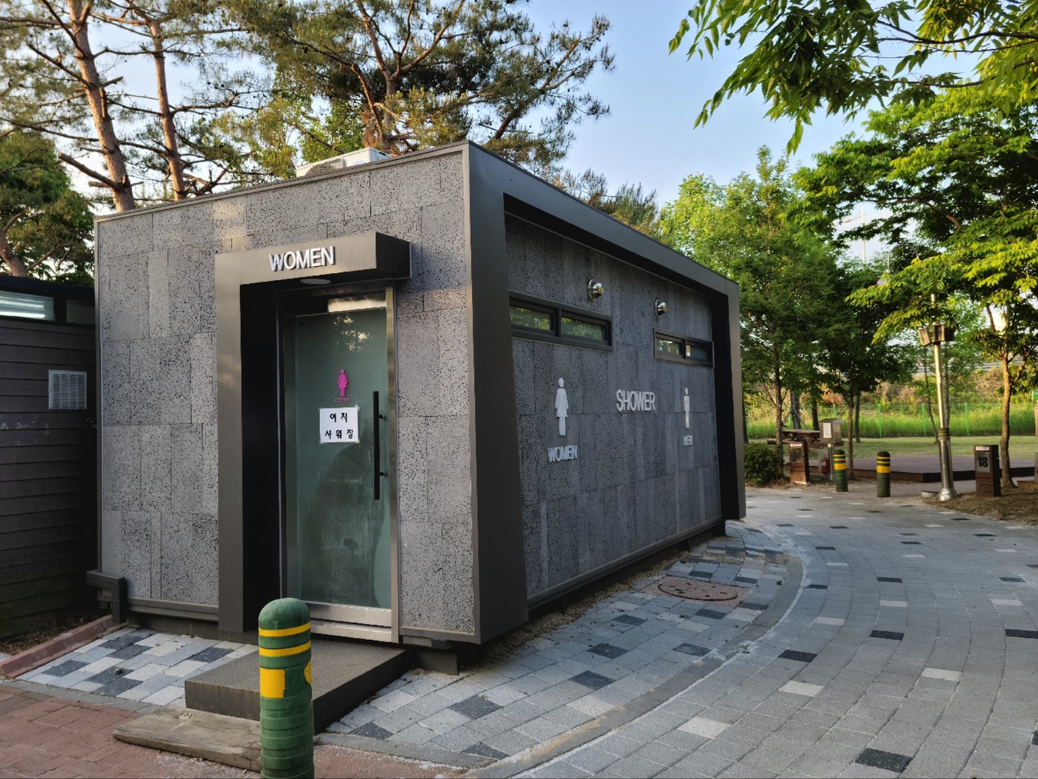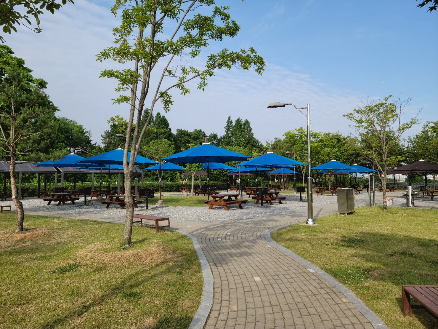 파란색 파라솔이 햇볕을 가려주는 공간이네요. 시설도 관리가 잘 되어 제법 깨끗했어요.