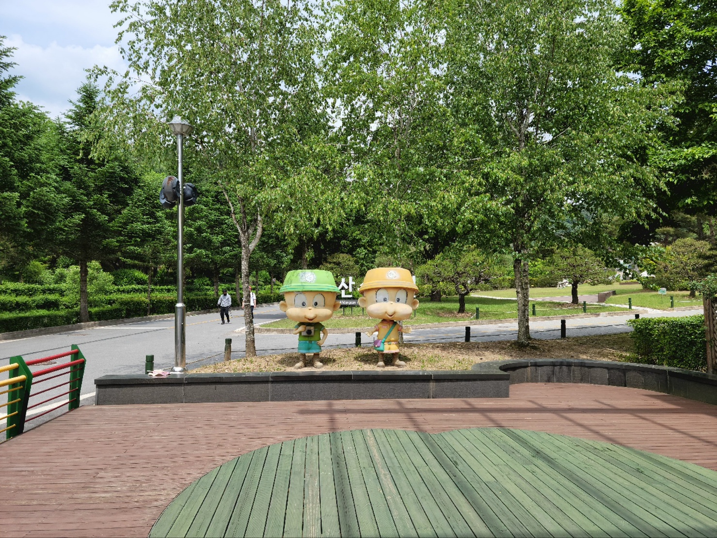 3분쯤 오르다 보니 예쁜 조형물들이 있는 산림과학박물관 앞에 도착하게 됩니다. 나무를 뜻하는 목자를 철제 조형물로 조화롭게 잘 만들어 놨습니다.